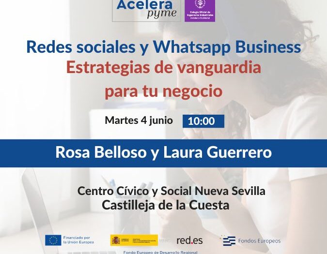 En Acelera Pyme estamos emocionados de invitarte a nuestro próximo evento titulado “Redes Sociales y WhatsApp Business: Estrategias de vanguardia para tu negocio”. Este evento se llevará a cabo el martes 4 de junio a las 10 de la mañana en el Centro Cívico y Social Nueva Sevilla de Castilleja de la Cuesta.