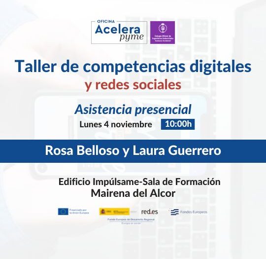 El próximo lunes 4 de noviembre, a las 10:00 de la mañana, se llevará a cabo en Edificio Impúlsame (sala de formación) en Mairena del Alcor, Sevilla, un interesante Taller de Competencias Digitales y Redes Sociales. Este evento está pensado para empresarios, emprendedores, autónomos y profesionales que buscan mejorar su manejo de las herramientas digitales y sacar el máximo provecho de las redes sociales para impulsar sus proyectos.